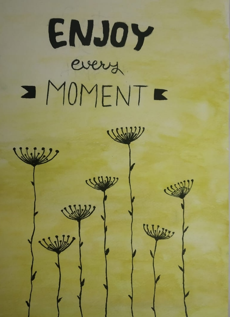 This painting tells not dwell on the past, nor being anxious or worrying about the future. When we concentrate our attention on the present we focus on the task at hand. We give our full attention to what we are doing and we let go of outcomes.