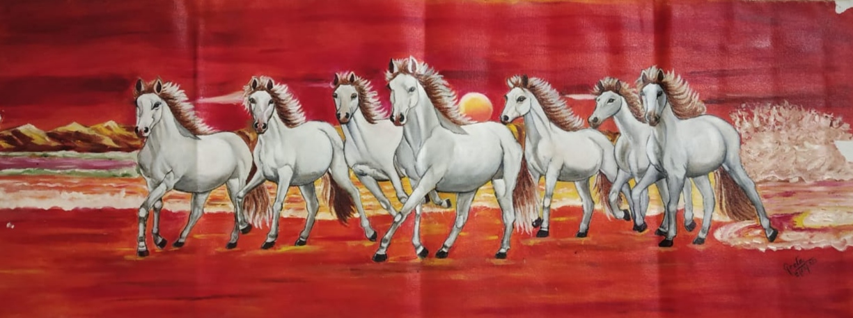 You Can Use This Seven Horses Running Painting As A Vaastu Products For Home And Also As Vaastu Product For Office. Seven Running Horses In One Direction With Sun As A Backdrop Is Believed To Bring Prosperity In The Home Or Office They Are Installed In. So Go Ahead And Try It.